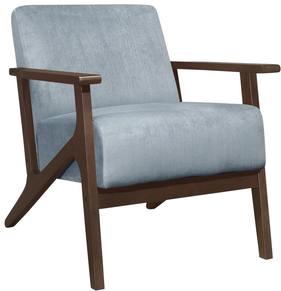 The frame of the August Collection recalls a time when simplicity of profile was the height of style. The streamlined angular design of the wood arms and legs is finished in dark walnut which serves to highlight the blue-gray velvet covering.Read More