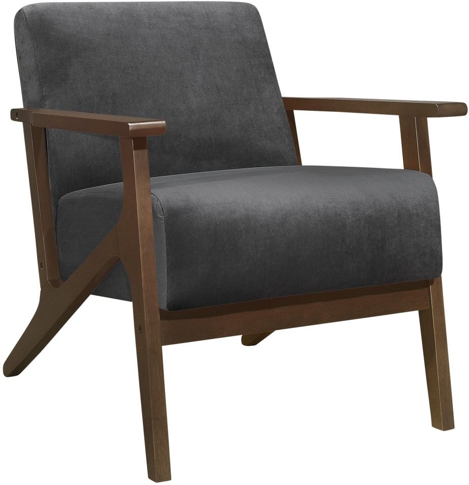 The frame of the August Collection recalls a time when simplicity of profile was the height of style. The streamlined angular design of the wood arms and legs is finished in dark walnut which serves to highlight the dark gray velvet covering.Read More