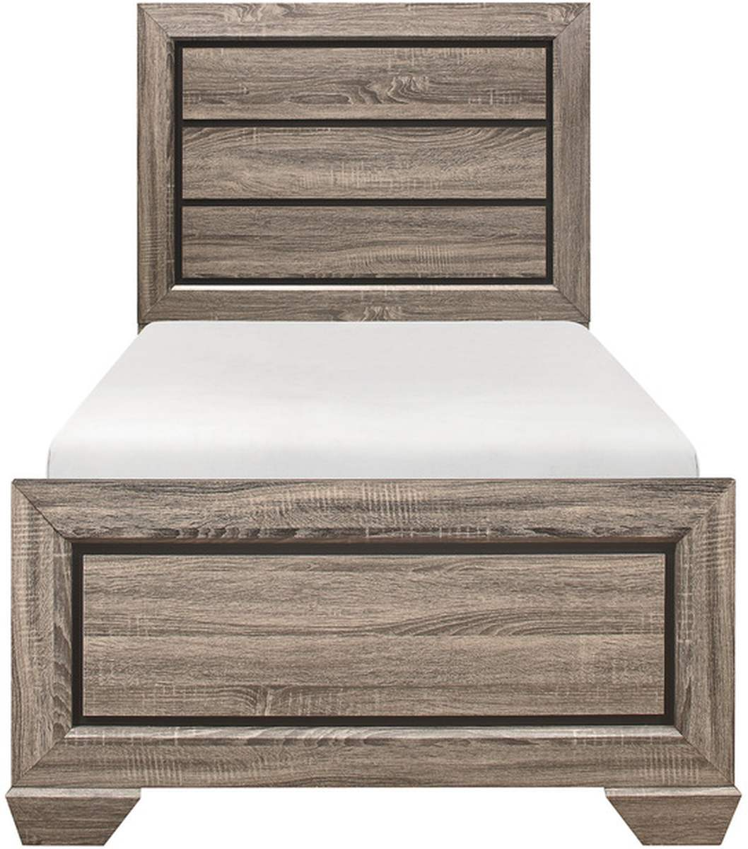 Blending the elements of contemporary design and rustic aesthetic, the Beechnut Collection is a unique addition to your bedroom. Dark under-paneling serves to highlight the gray finish of the embossed faux-wood veneer of the raised panels on the twin bed.Read More