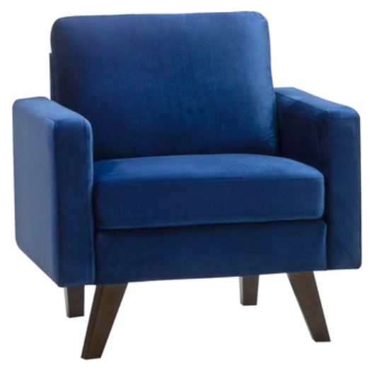 Meanwhile, plush blue velvet upholstery blends wonderfully in your room. For a winning combination of amenity and flair, you can't go wrong with the Bellerophon chair. Also available in grey velvet.